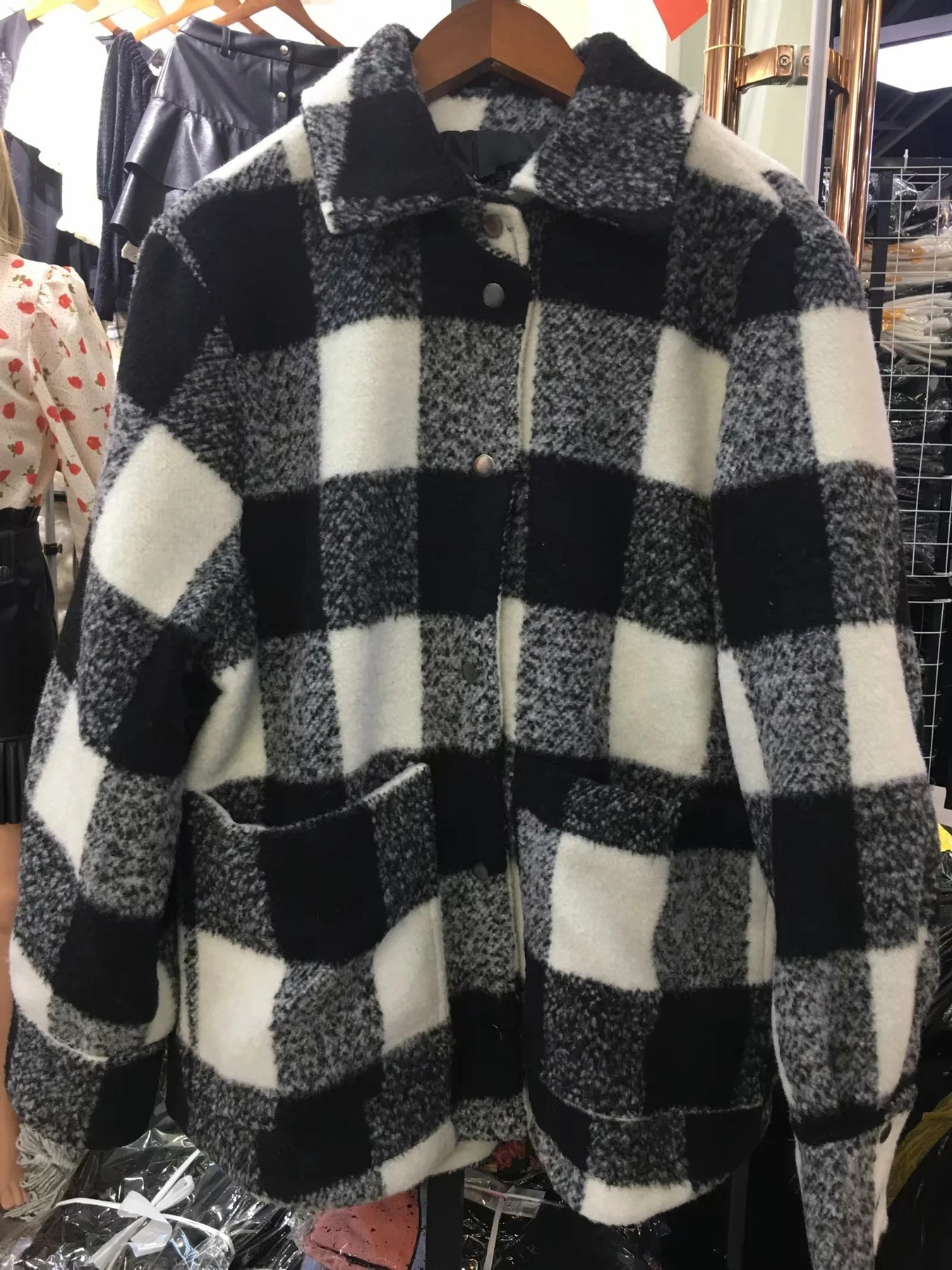 Black and white checkered shirt coat